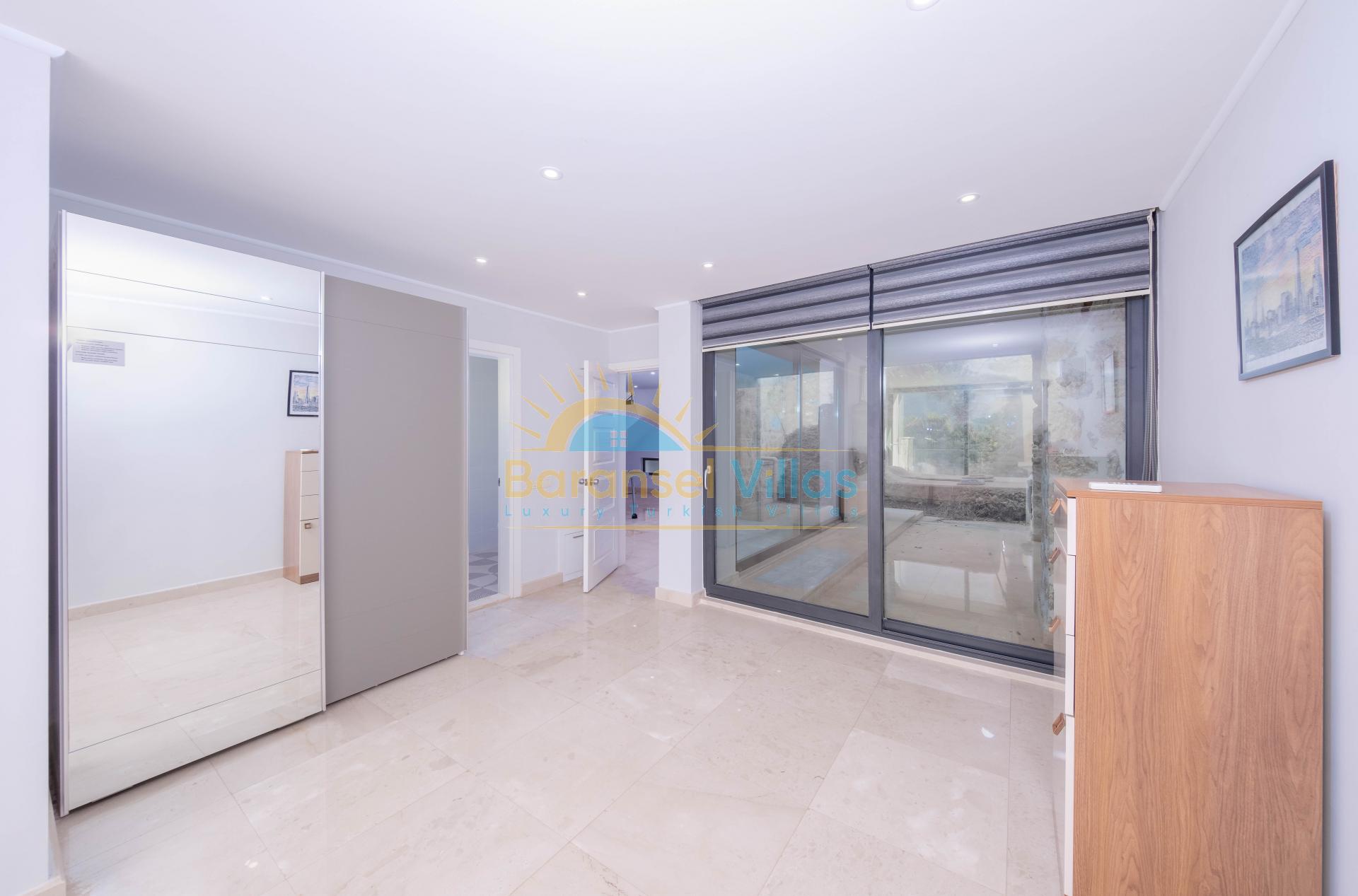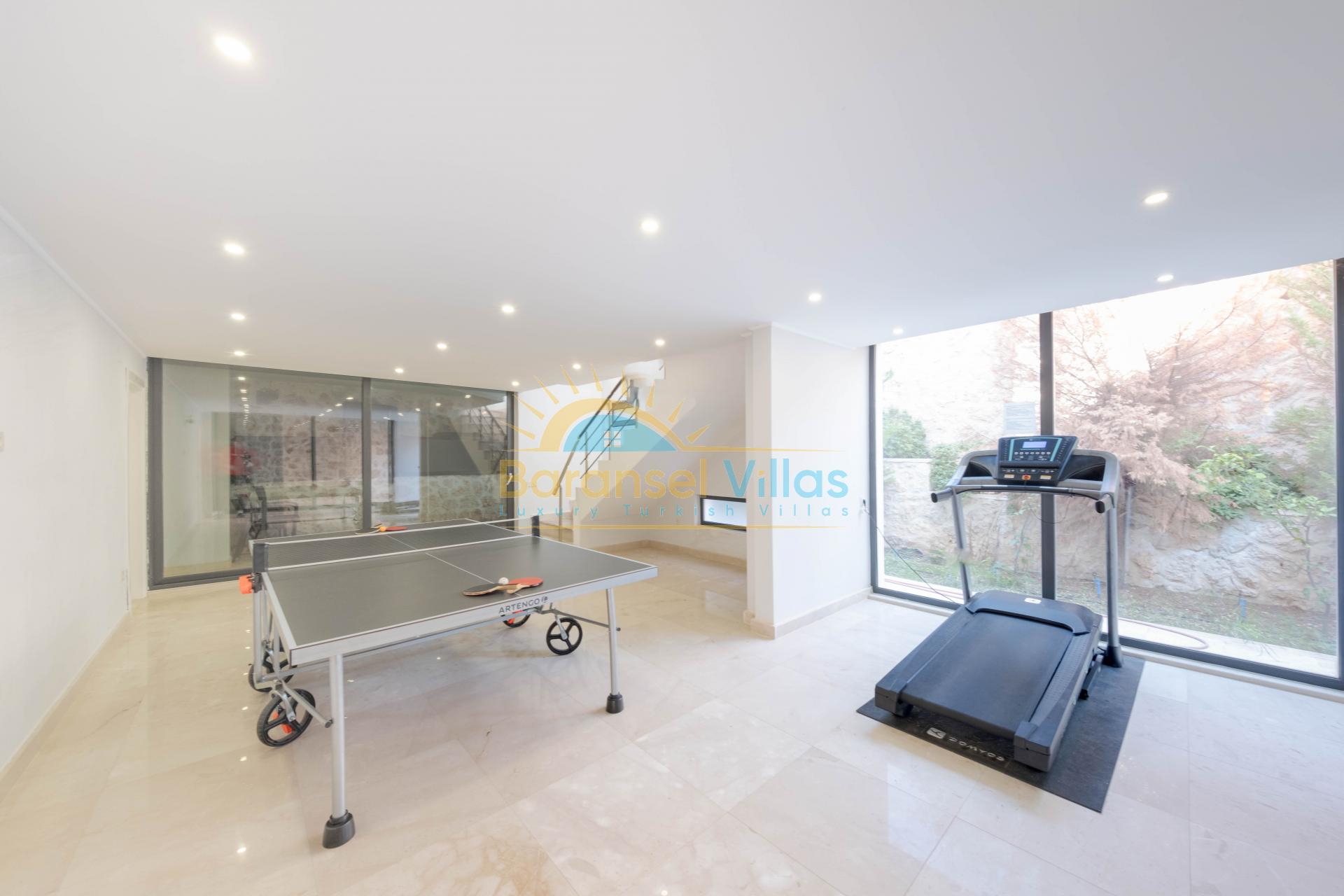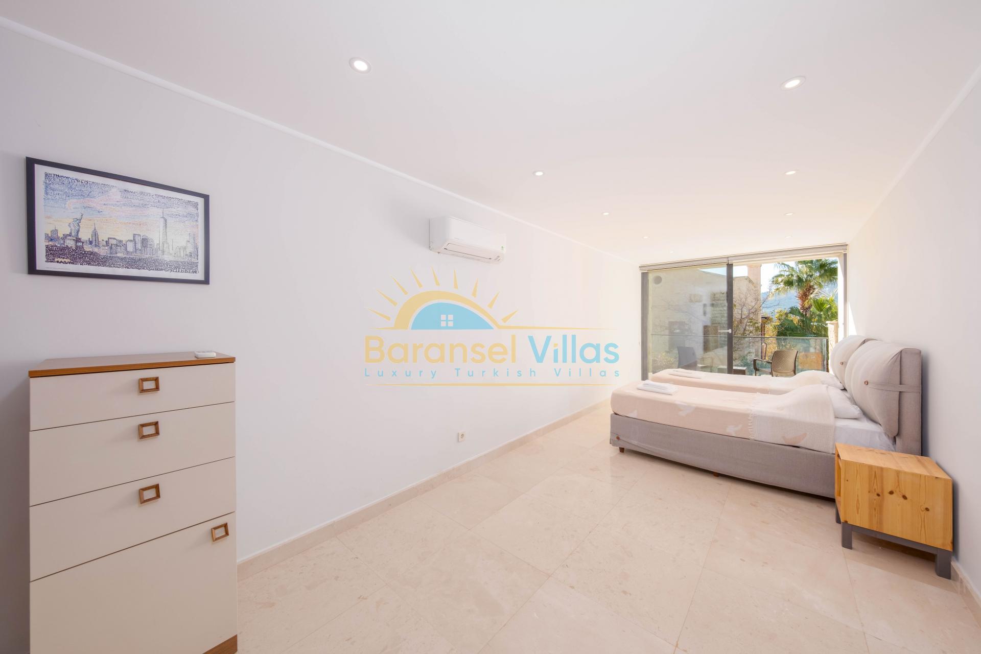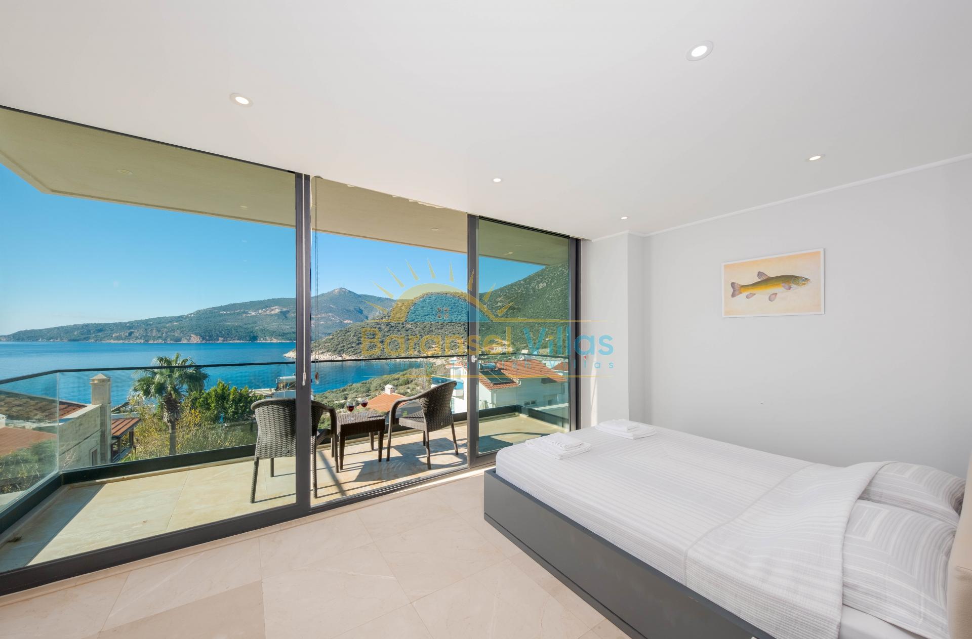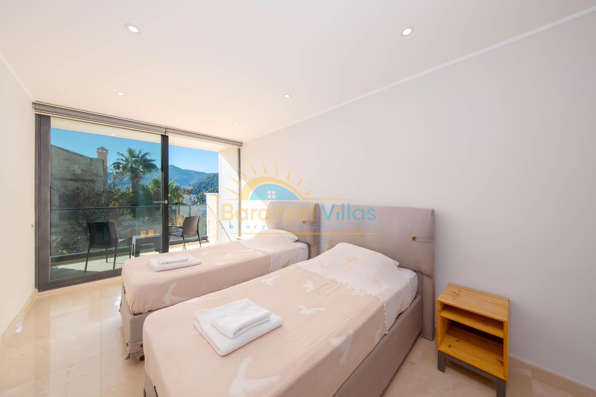 Villa Colibri is a stylish modern villa found in the town of Kalkan within walking distance to the sea, beach and restaurants. This villa has outstanding views of the sea at Kalamar bay- one of Kalkan's most unspoiled and peaceful bays. The open-plan kitchen, living room and dining area on the ground is spacious with chic modern fittings, an island in the kitchen with gas hob and integrated large dining table and has wonderful pool and sea views from every aspect. The lower ground floor offers an indoor sports room with table tennis table and running machine. Off this room is the first of the villas four bedrooms, a very spacious twin that can be made up as a double with shaded front balcony. The first floor has two double bedrooms, one with bath and shower and both offering large private balconies from where our guests can rise and sit and admire the serene seascape. The master bedroom of the villa is on the second floor connecting to the roof terrace and has a jacuzzi in it's bathroom.