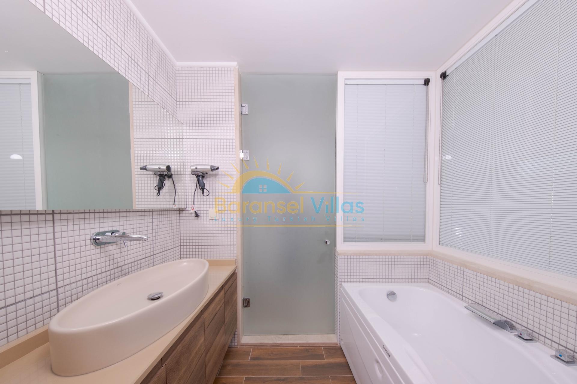 We were 4 friends and we had a good holiday. It's walking distance to the sea, but we didn't think to go for once, you feel so comfortable at home. The pool and view were also great. Thanks to the private parking area, we did not experience any parking problems, but we had two problems; We were left without air conditioning for 3 days because the living room air conditioner was faulty. The top floor bathroom had a water overflow problem, we had to use the shower of the room below. If these two problems are solved, it is a holiday home that we can choose again.
