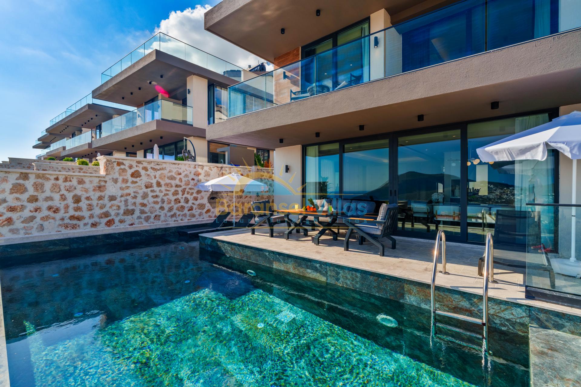 Villa Firefly, located between Kalkan's Kalamar Bay area and Ortaalan is a detached 2 bedroom villa with the capacity to sleep 4 guests. Completed in 2025 Villa Firefly a new build villa, with a modern design and has been fitted with comfortable furniture. The spacious pool terrace features a private pool, as well as plenty of places for dining, sunbathing and simply relaxing by the poolside. As well as this a buillt in coal barbeque can be found to the side allowing guests to dine al-fresco in the comfort of their own home.
