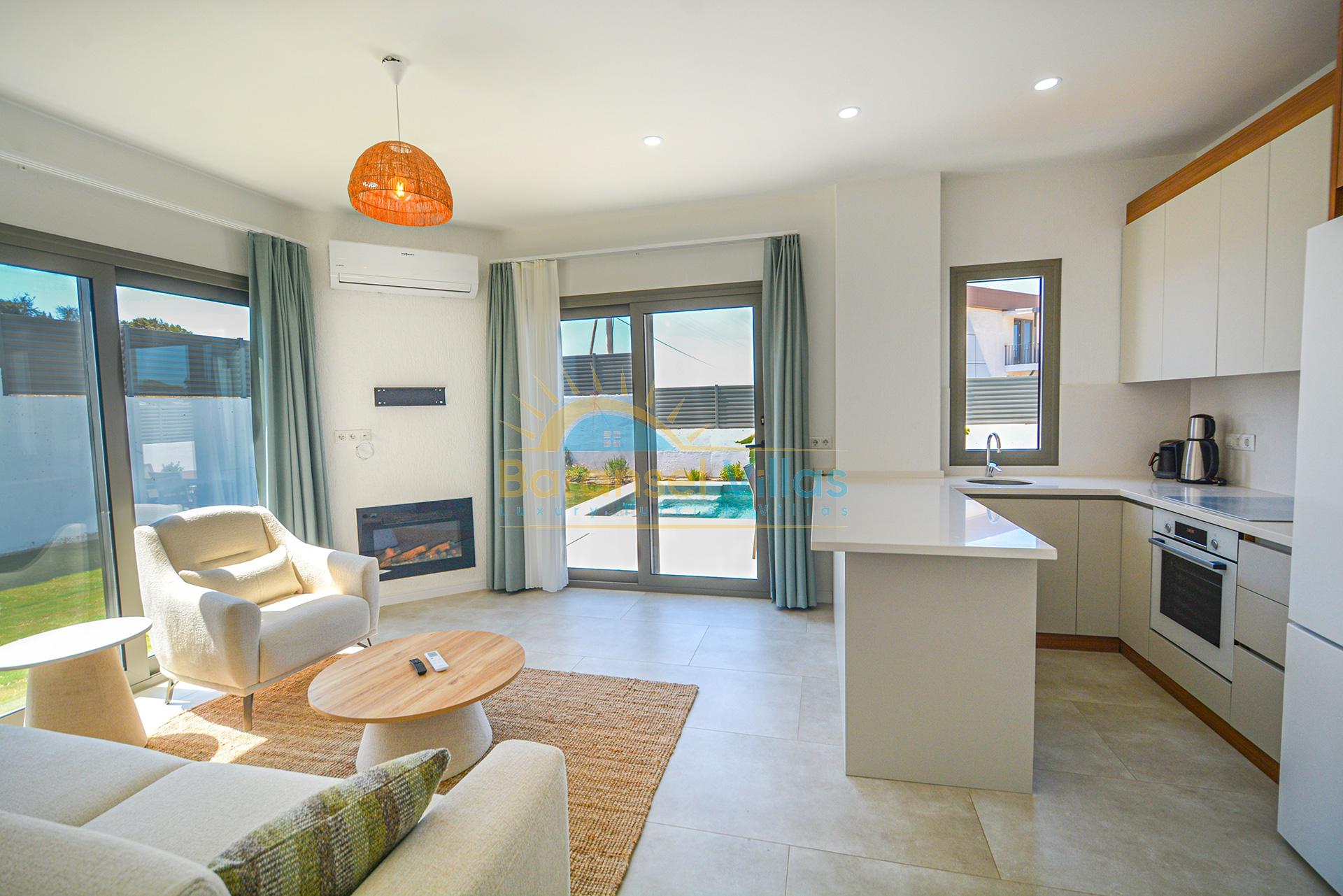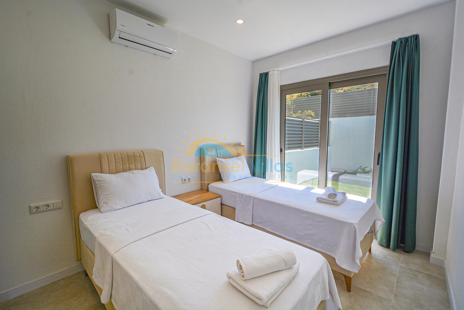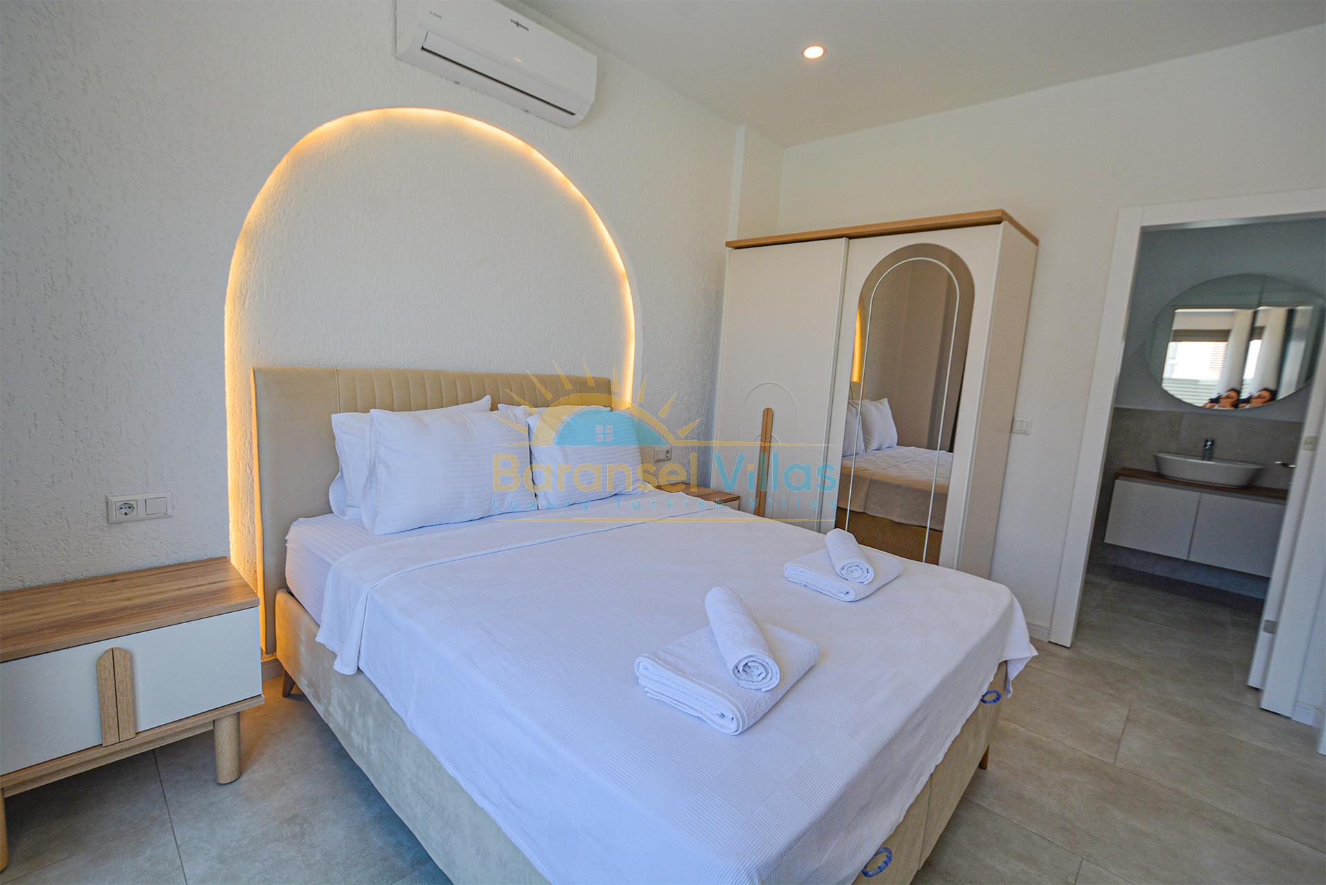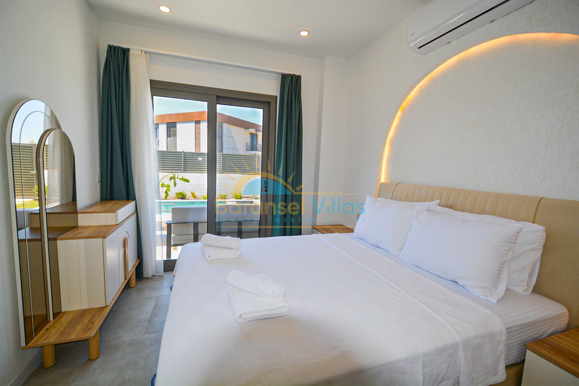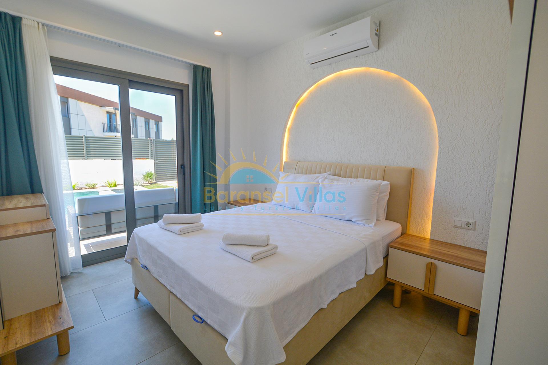 Two-bedroom villa Kaura offers accommodation for up to six guests, with a sofa bed in the living room. Featuring a private garden and pool, the villa also features a jacuzzi. Located close to Bodrum Airport, Villa Kaura is conveniently located near the tranquil fishing village of Güvercinlik and the villages of Bargilya, renowned for its historical heritage, natural beauty, and lake. Featuring a fireplace in the living room, the villa is also suitable for winter stays. If you plan your holiday itinerary to coincide with the end of October, you might even witness the flamingo migration that Lake Tuzla hosts. With this feature, the villa not only offers comfortable accommodations but also promises its valued guests a holiday filled with discovery.