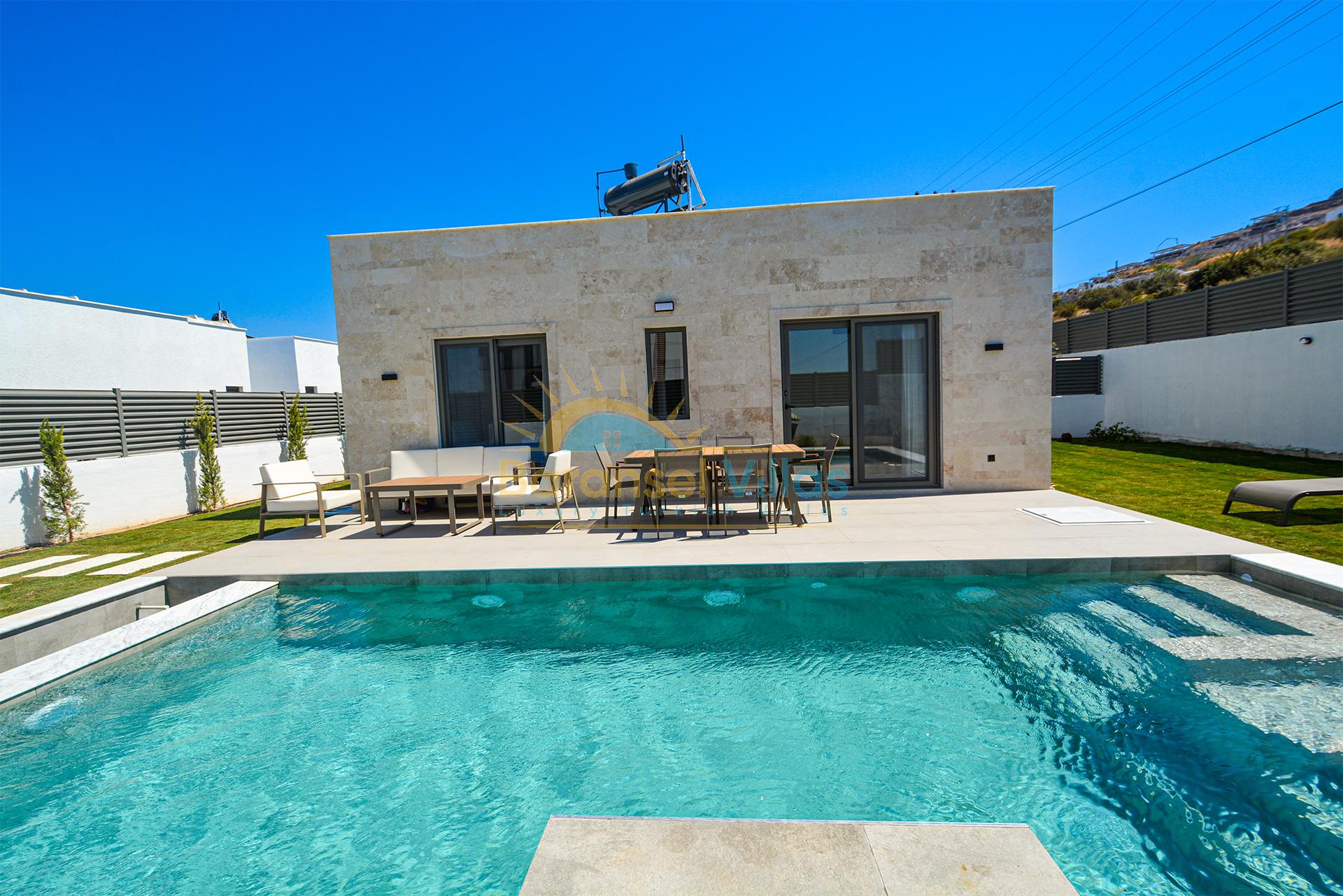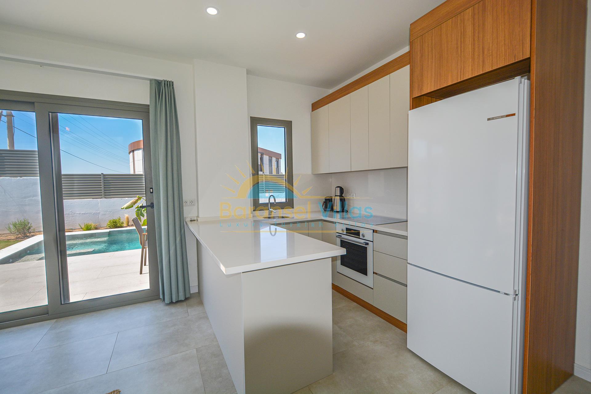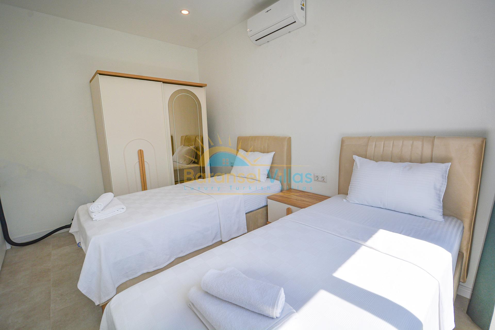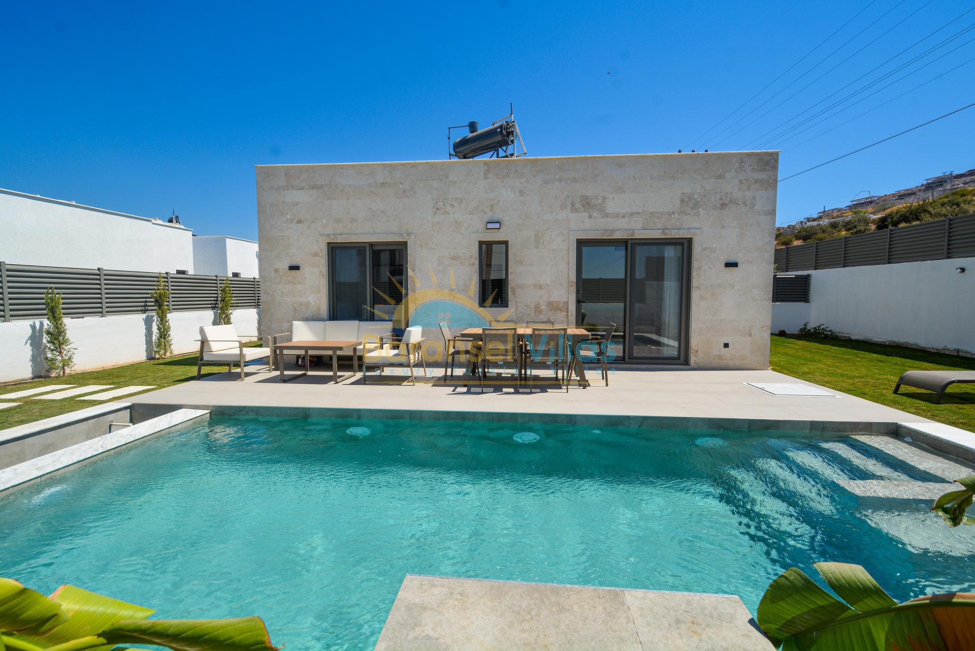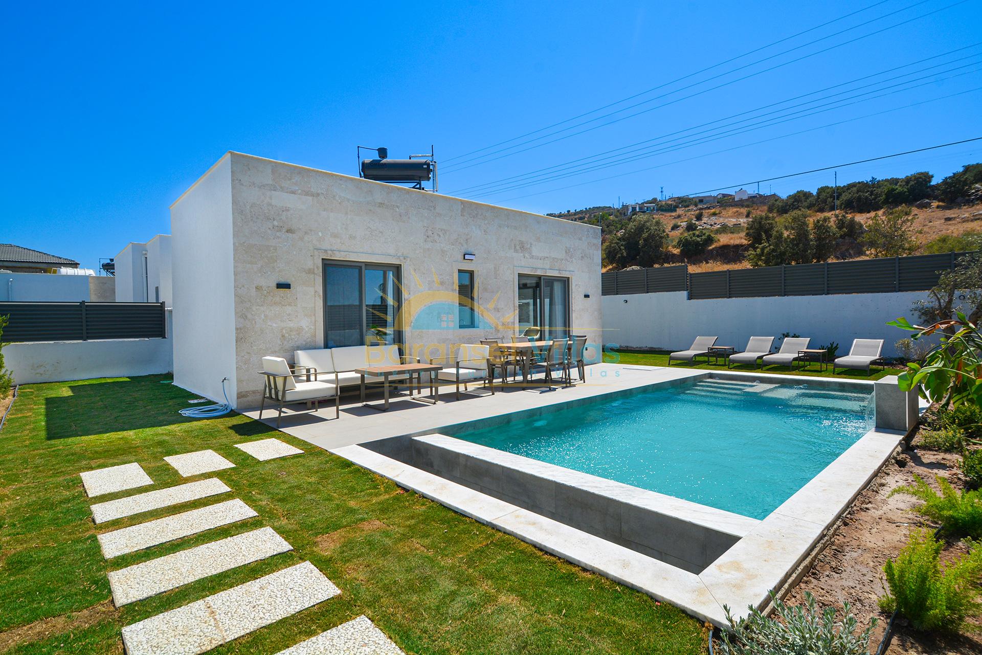 Two-bedroom villa Kaura offers accommodation for up to six guests, with a sofa bed in the living room. Featuring a private garden and pool, the villa also features a jacuzzi. Located close to Bodrum Airport, Villa Kaura is conveniently located near the tranquil fishing village of Güvercinlik and the villages of Bargilya, renowned for its historical heritage, natural beauty, and lake. Featuring a fireplace in the living room, the villa is also suitable for winter stays. If you plan your holiday itinerary to coincide with the end of October, you might even witness the flamingo migration that Lake Tuzla hosts. With this feature, the villa not only offers comfortable accommodations but also promises its valued guests a holiday filled with discovery.