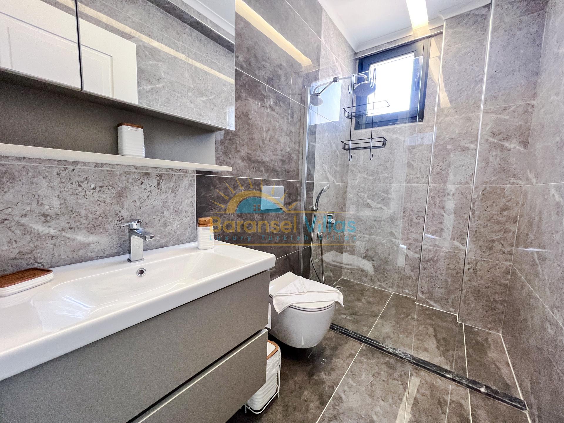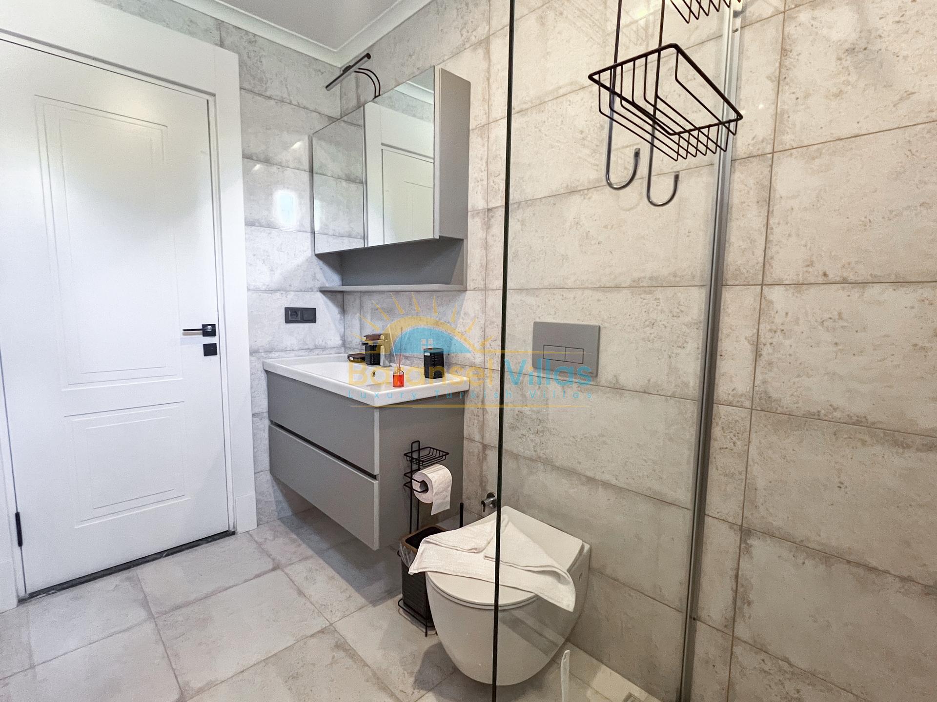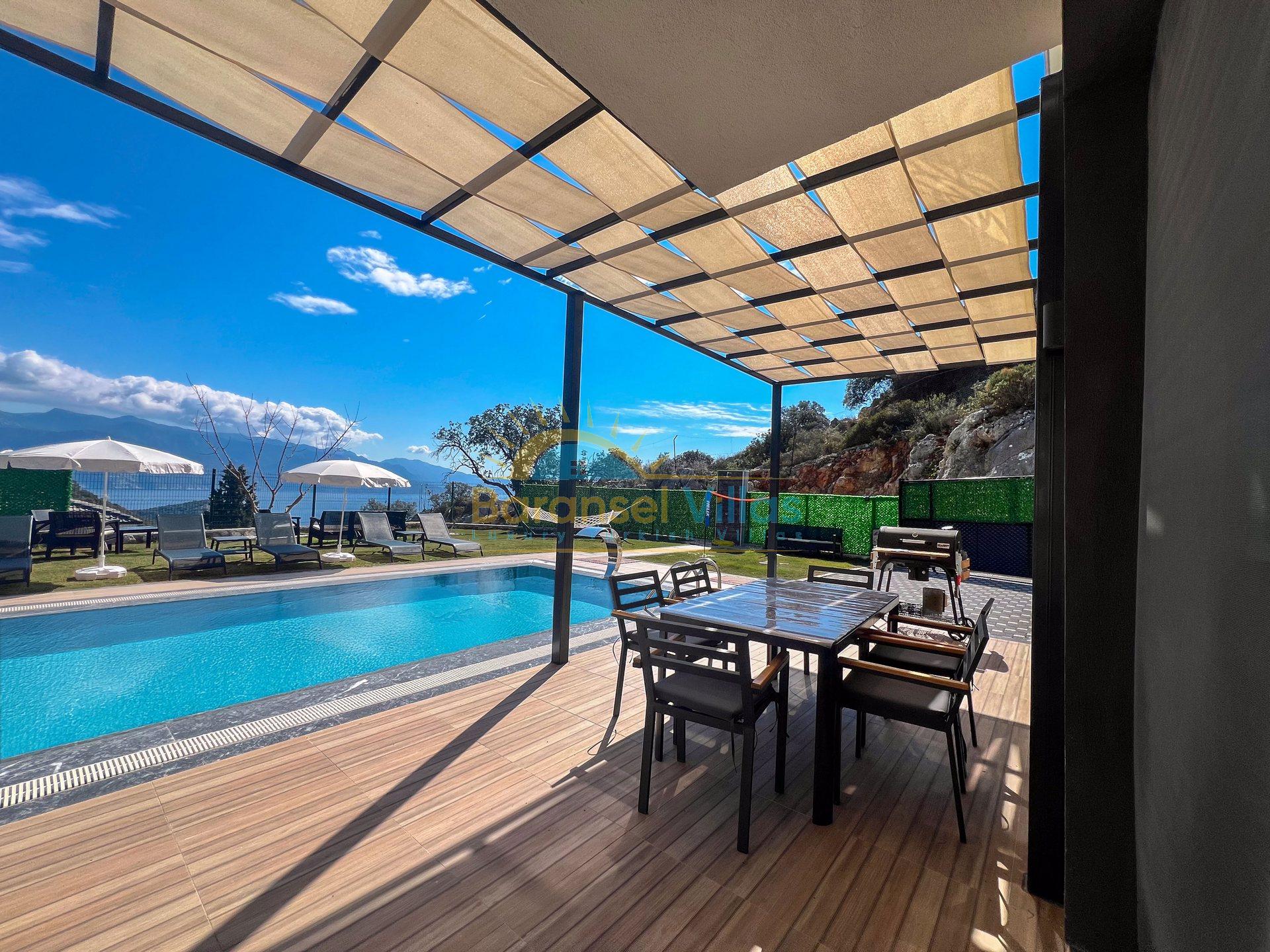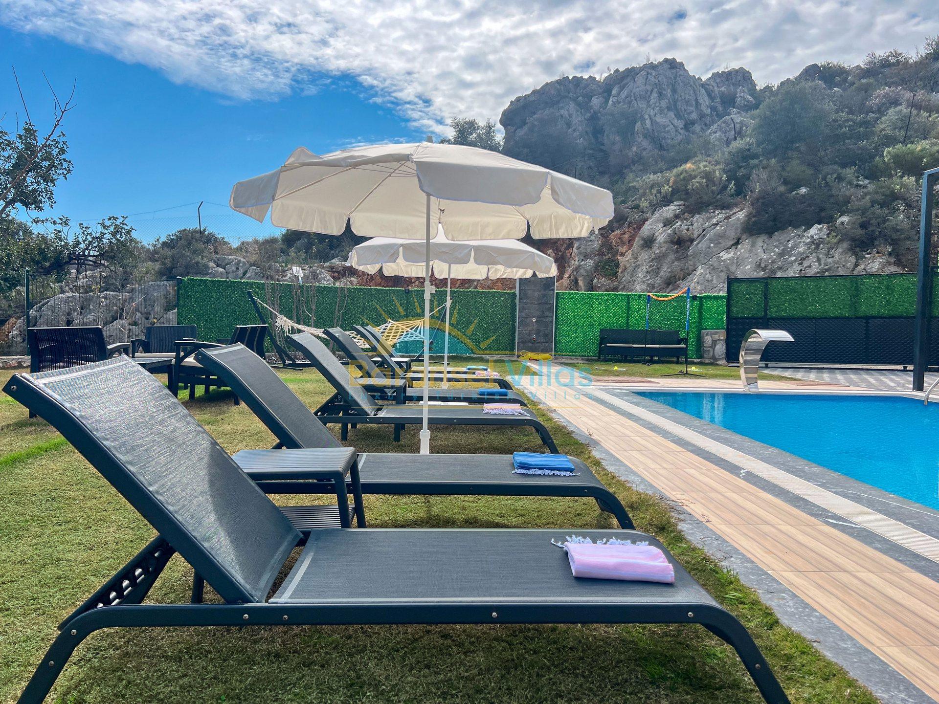 Villa Milena is a luxurious villa located in KayaKöy, Fethiye; one of the world-famous holiday destinations. Situated in a very special location, it blends seamlessly with the blue and green of the sea, showcasing its modern and striking appearance. Its infinity pool and exquisite sea views create a captivating effect. Located in a quiet and peaceful setting, surrounded by nature, this villa offers an unforgettable holiday away from prying eyes. Decorated with high-quality and stylish furnishings within a spacious garden, the villa accommodates up to 6 people in 3 bedrooms.
