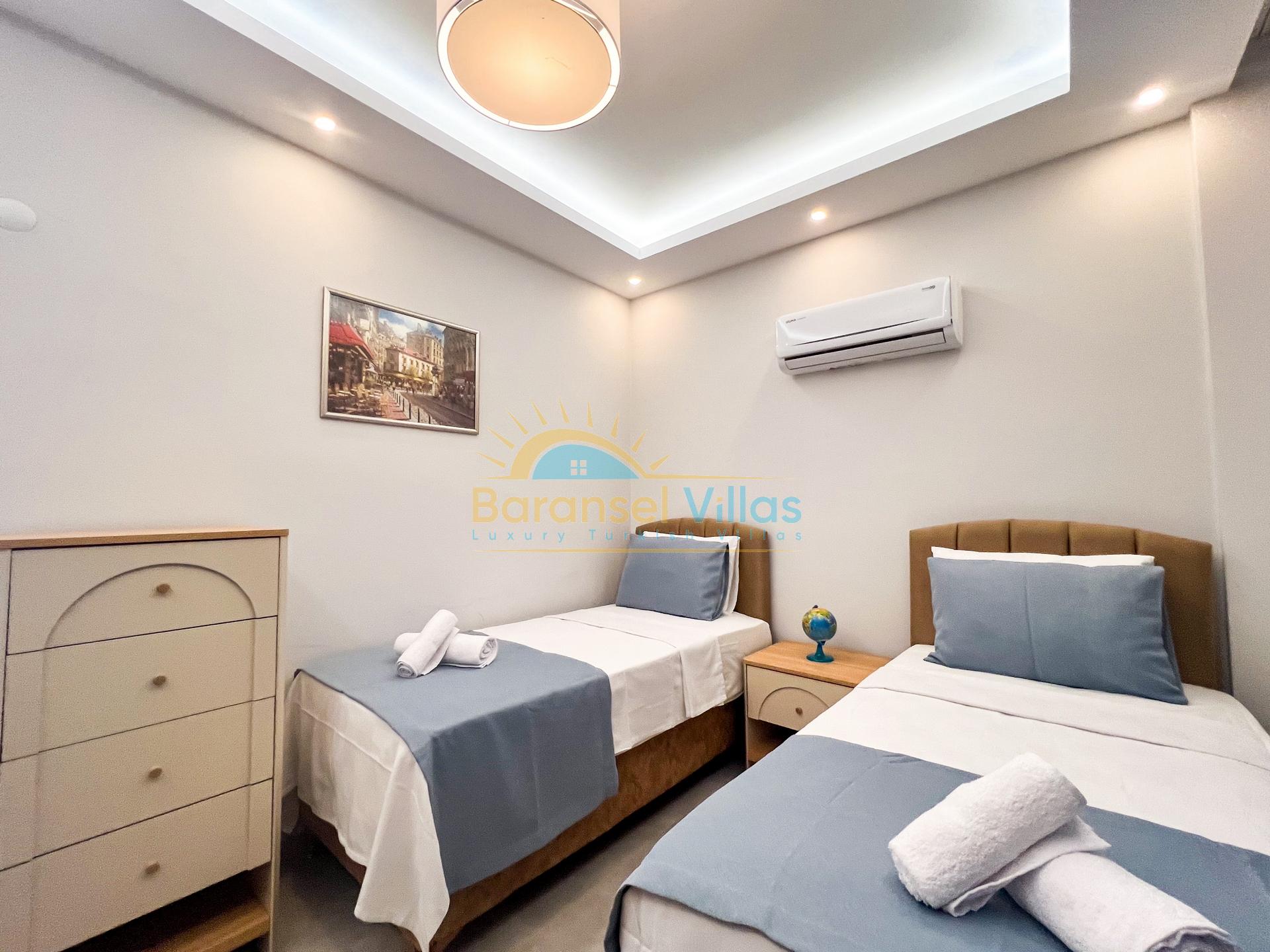 Details: 2 single beds, bedside table, wardrobe, air conditioning, WC & bathroom (shared in the living room).