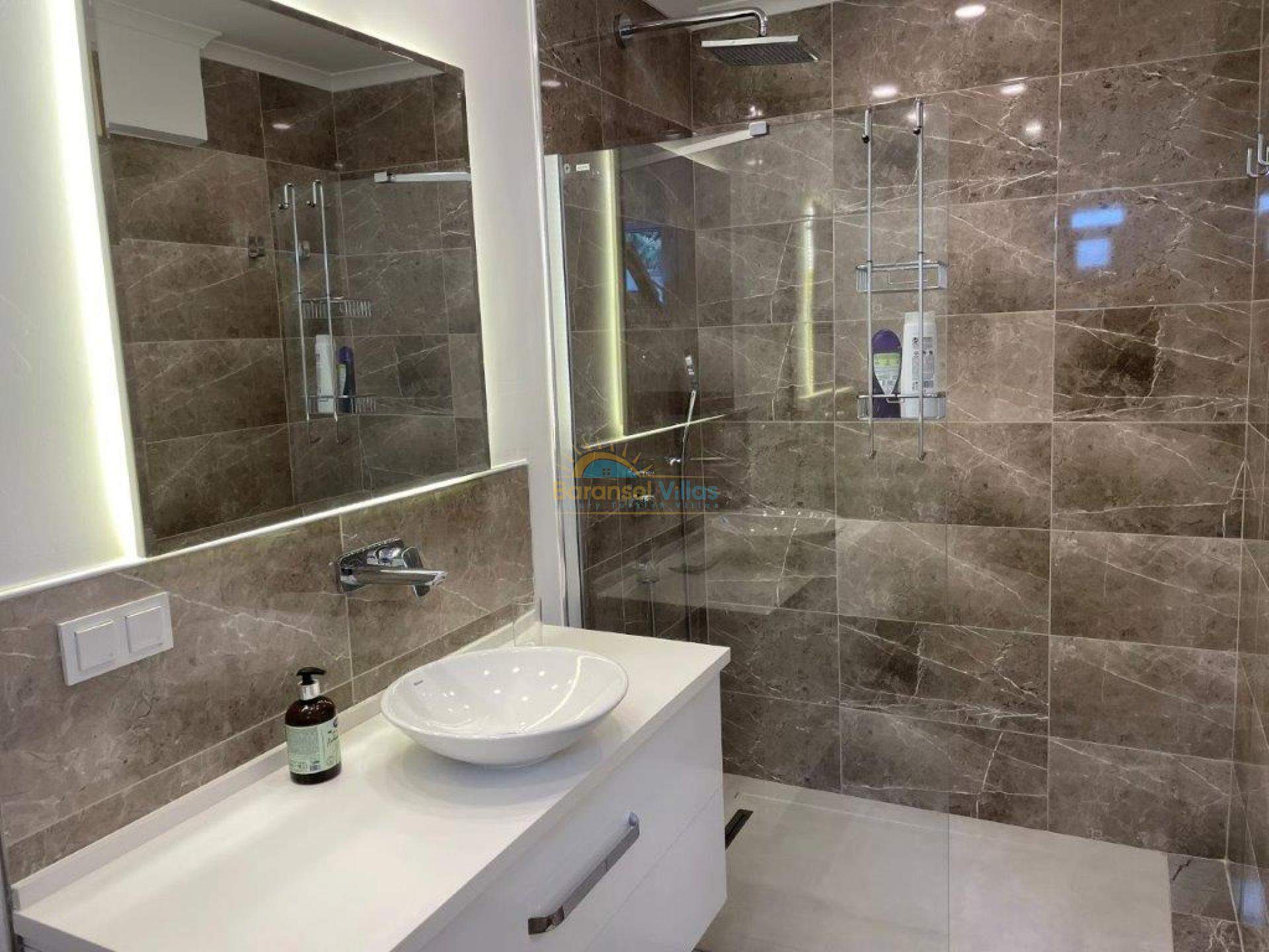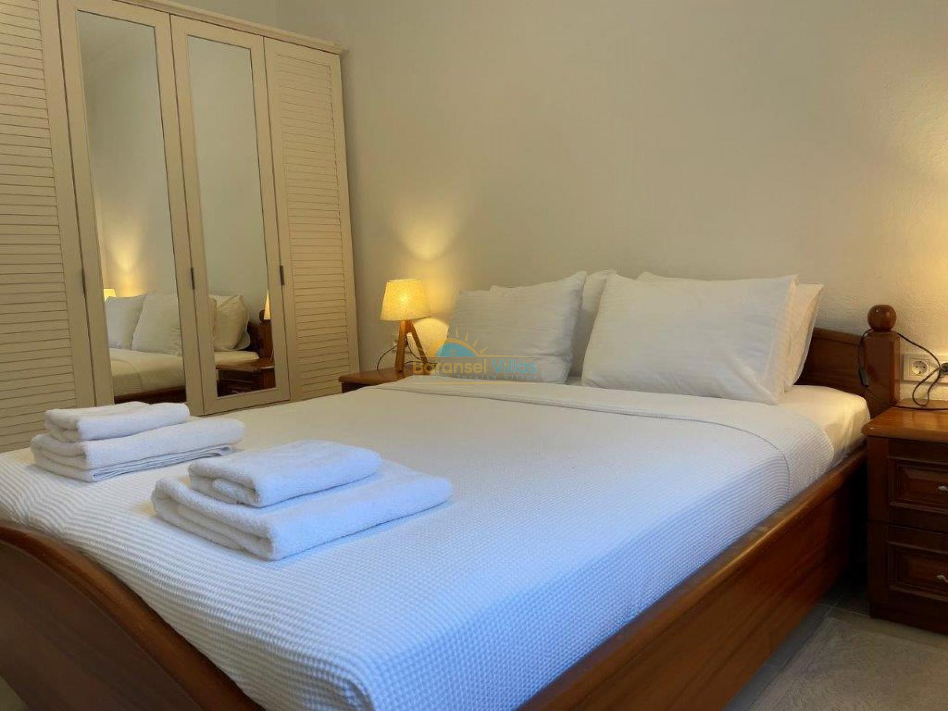 Villa Mine is located in Bodrum’s Guvercinlik area.With its 3 bedrooms our single-storey villa is capable of hosting up to 6 people.Additionally the villa is situated just near the seafront allowing our visitors to have easy access to the crystal clear waters of the Aegean Sea.Here our customers can spend their day delighting themselves with swimming,sunbathing and other fun activities and enjoy their evening with a magnificent sunset in the company of their loved ones.The villa offers an open American Kitchen,3 bedrooms and a beautiful garden. Our villa is 15 km from Bodrum center and 20 km from Milas airport.