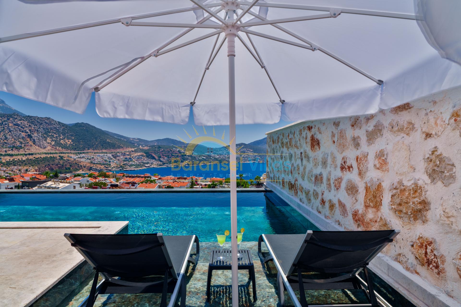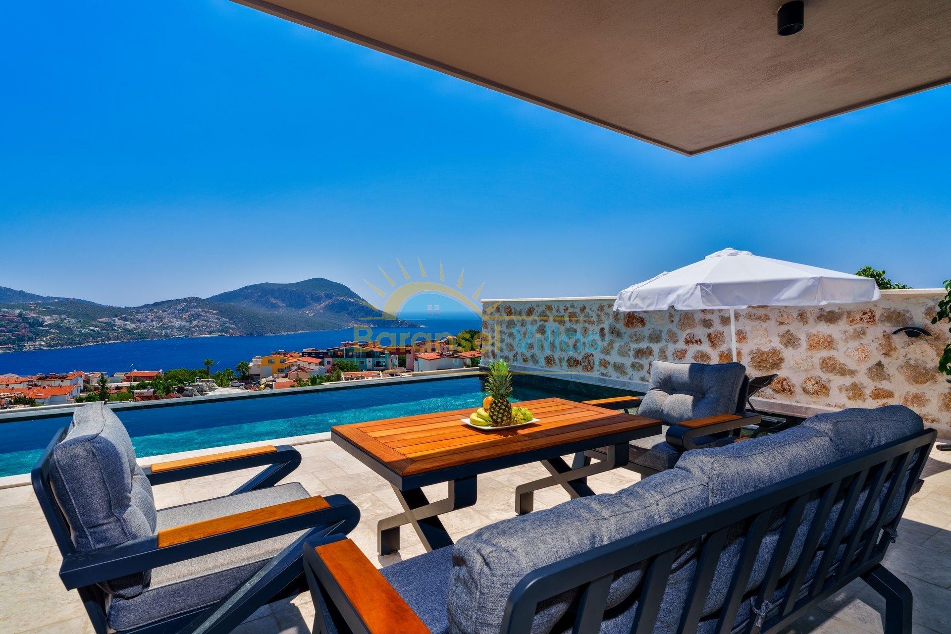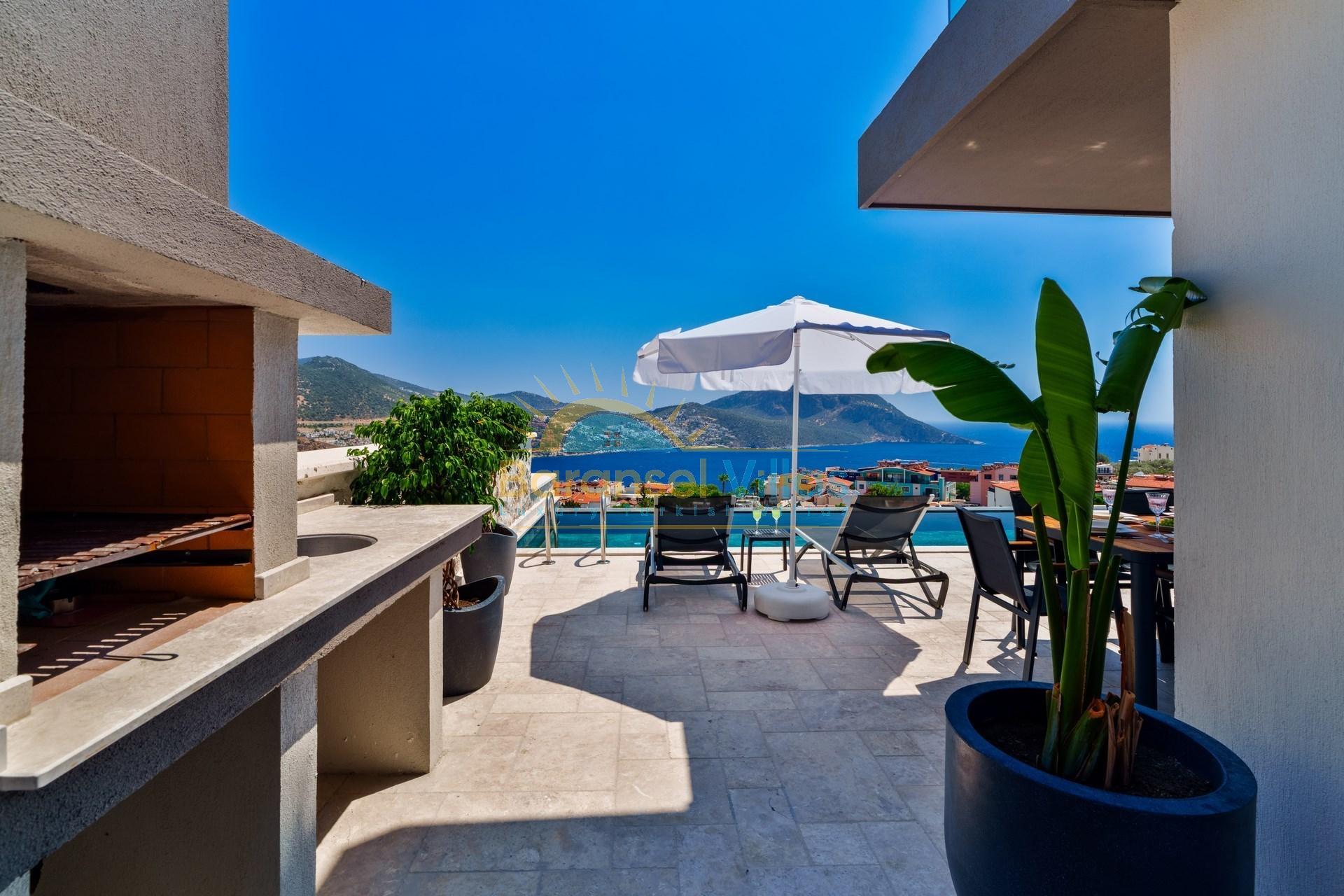 Villa Sea Vista, located between Kalkan's Kalamar Bay area and Ortaalan is a detached 2 bedroom villa with the capacity to sleep 4 guests. Completed in 2025 Villa Sea Vista a new build villa, with a modern design and has been fitted with comfortable furniture. The spacious pool terrace features a private pool, as well as plenty of places for dining, sunbathing and simply relaxing by the poolside. As well as this a buillt in coal barbeque can be found to the side allowing guests to dine al-fresco in the comfort of their own home.