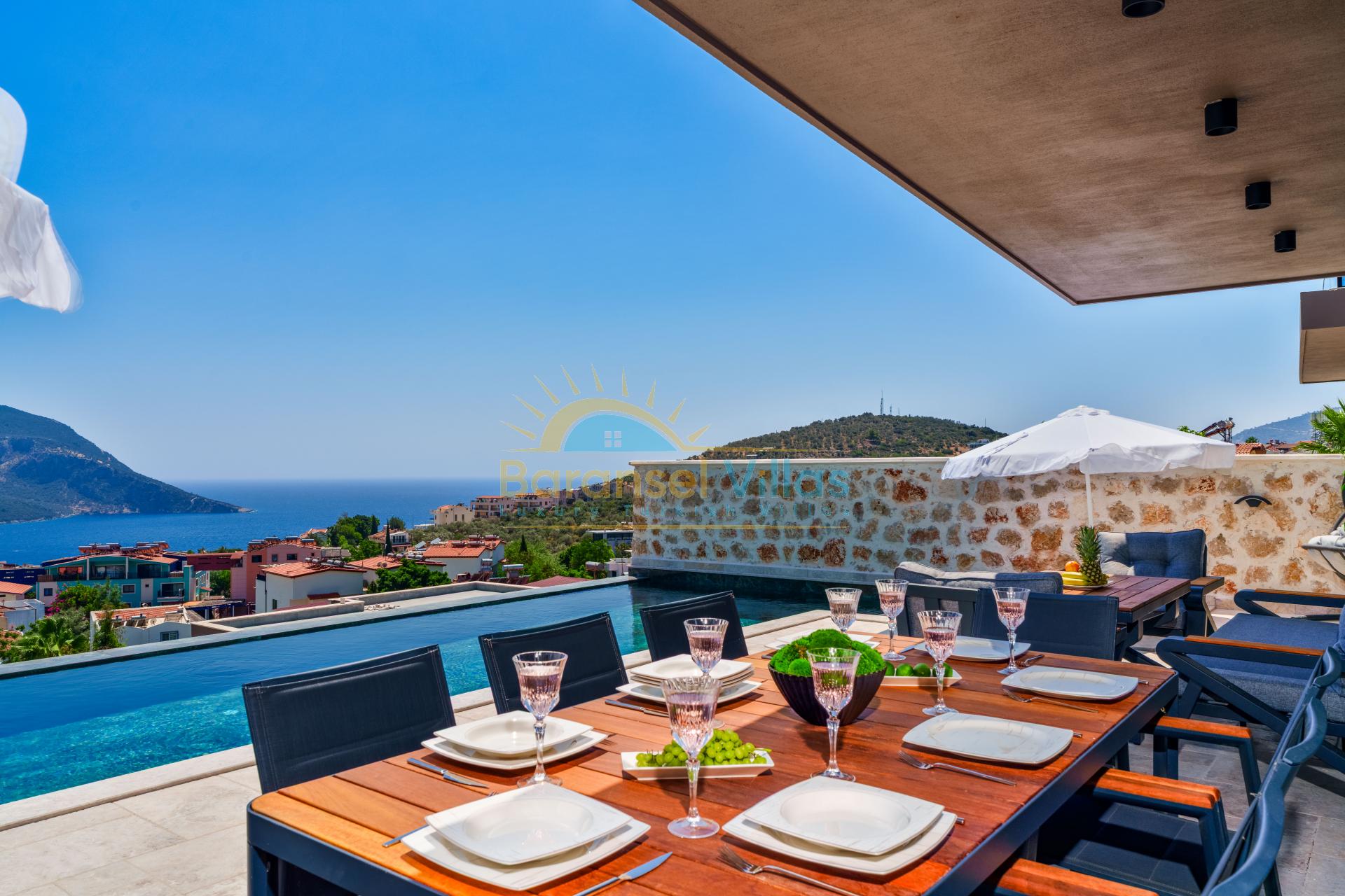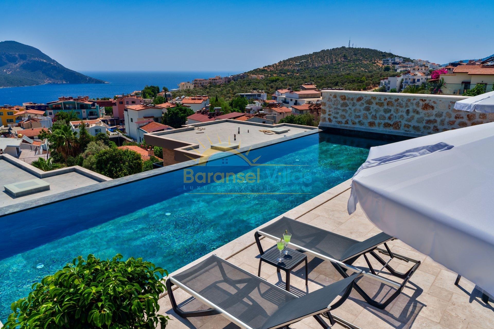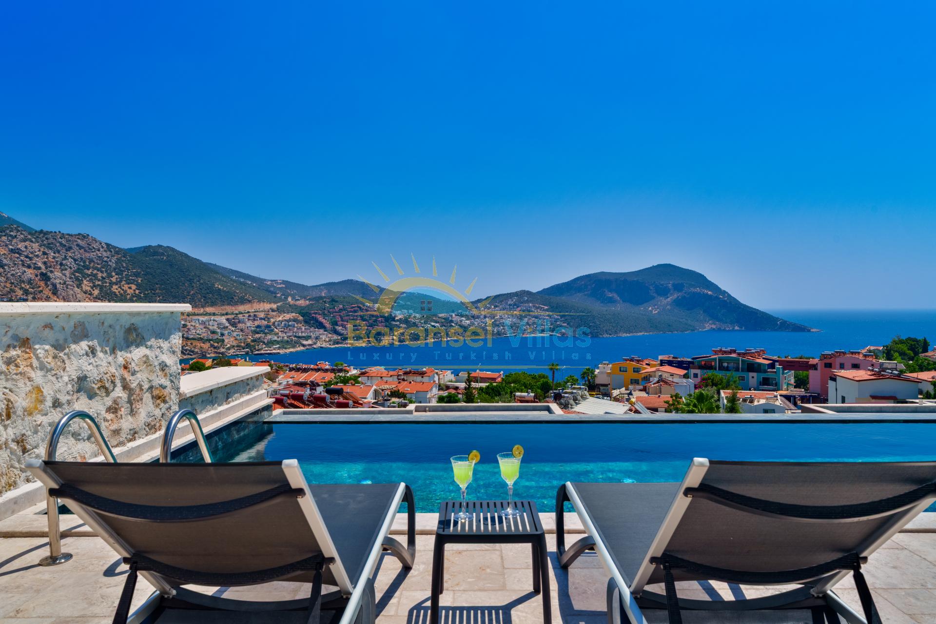 Villa Sea Vista, located between Kalkan's Kalamar Bay area and Ortaalan is a detached 2 bedroom villa with the capacity to sleep 4 guests. Completed in 2025 Villa Sea Vista a new build villa, with a modern design and has been fitted with comfortable furniture. The spacious pool terrace features a private pool, as well as plenty of places for dining, sunbathing and simply relaxing by the poolside. As well as this a buillt in coal barbeque can be found to the side allowing guests to dine al-fresco in the comfort of their own home.