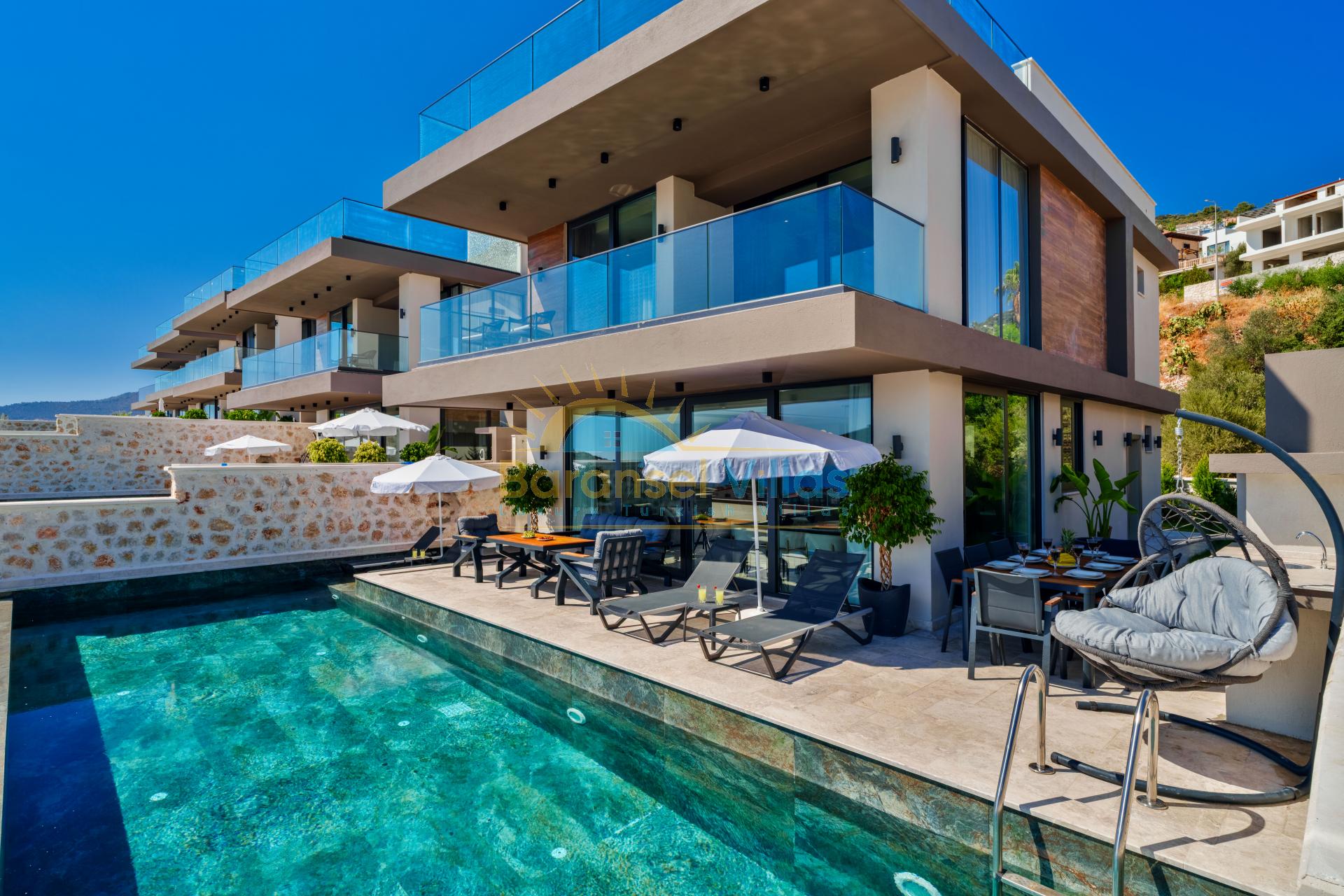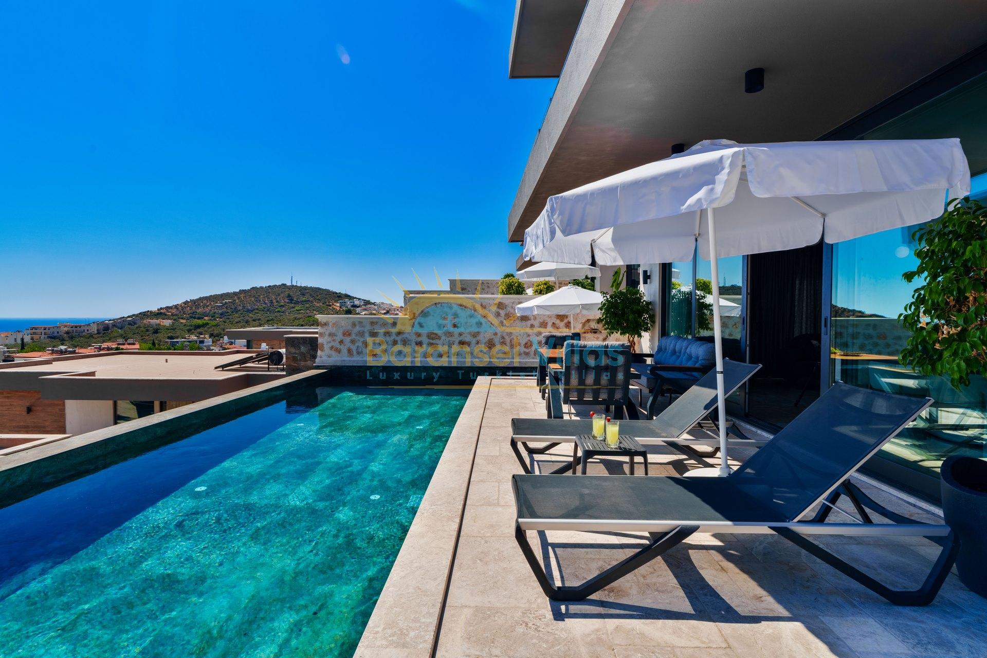 Villa Wave, located between Kalkan's Kalamar Bay area and Ortaalan is a detached 2 bedroom villa with the capacity to sleep 4 guests. Completed in 2025 Villa Wave is a new build villa, with a modern design and has been fitted with comfortable furniture. The spacious pool terrace features a private pool, as well as plenty of places for dining, sunbathing and simply relaxing by the poolside. As well as this a buillt in coal barbeque can be found to the side allowing guests to dine al-fresco in the comfort of their own home.