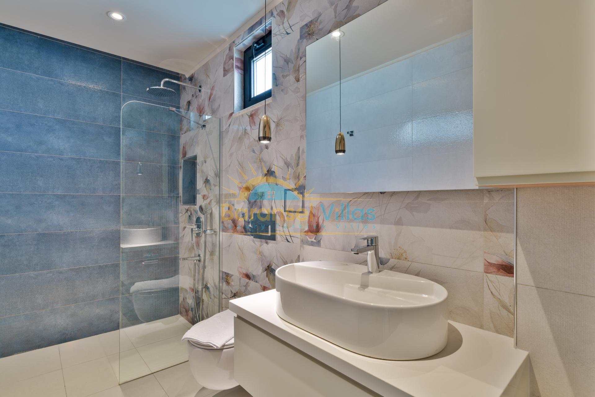 Villa Wave has been designed to allow each guest to relax comfortably on their well deserved break. Indoors is light and airy, with plenty of access to the pool terrace from the living area. On the basement floor an at home cinema can be found; here guests can relax and enjoy a movie night with loved ones. Upstairs, both of the villa's two bedrooms have en-suite bathrooms, and they both have double beds. The villa's Master Bedoom also features a jacuzzi, for added luxury on your luxury holiday.