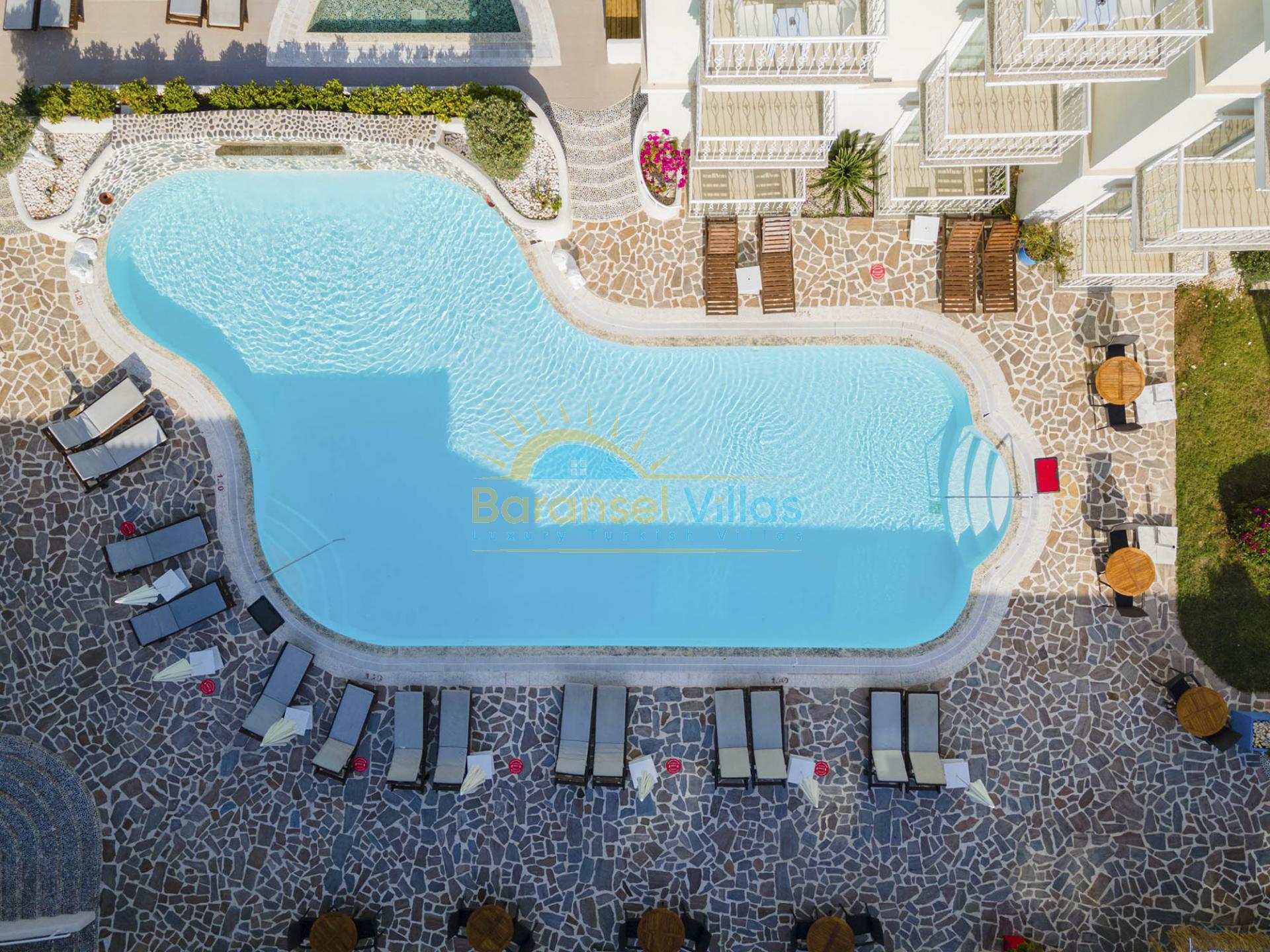 For our guests’ convenience and enjoyment, the hotel features a welcoming lobby with reception, an à la carte restaurant, two bars, a large outdoor swimming pool, and a separate children’s pool. Parasols, sunbeds, and cushions are provided around the pool area, while a private car parking area is also available.